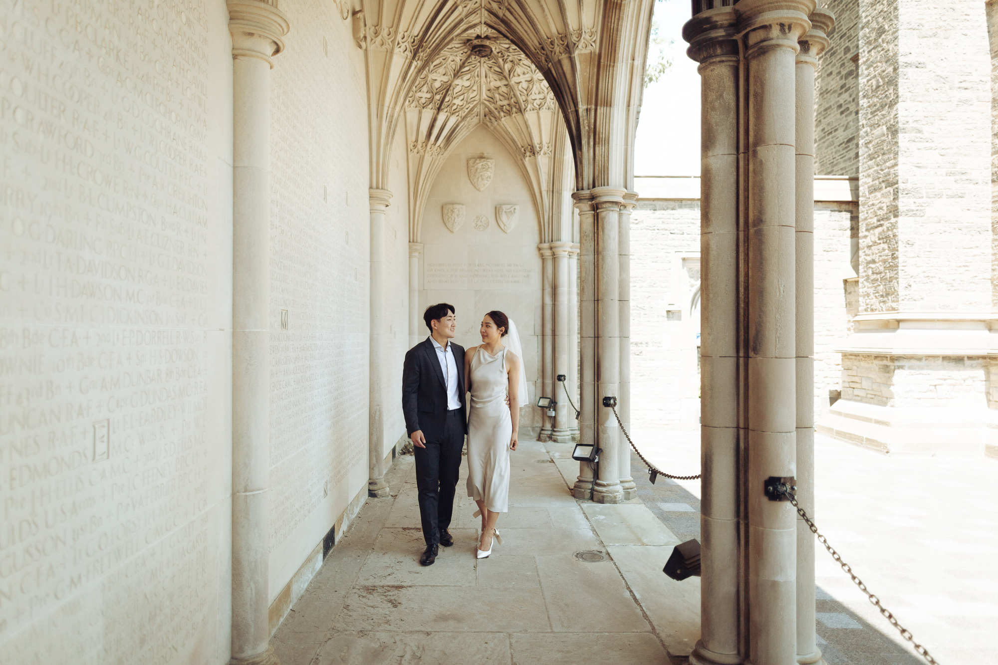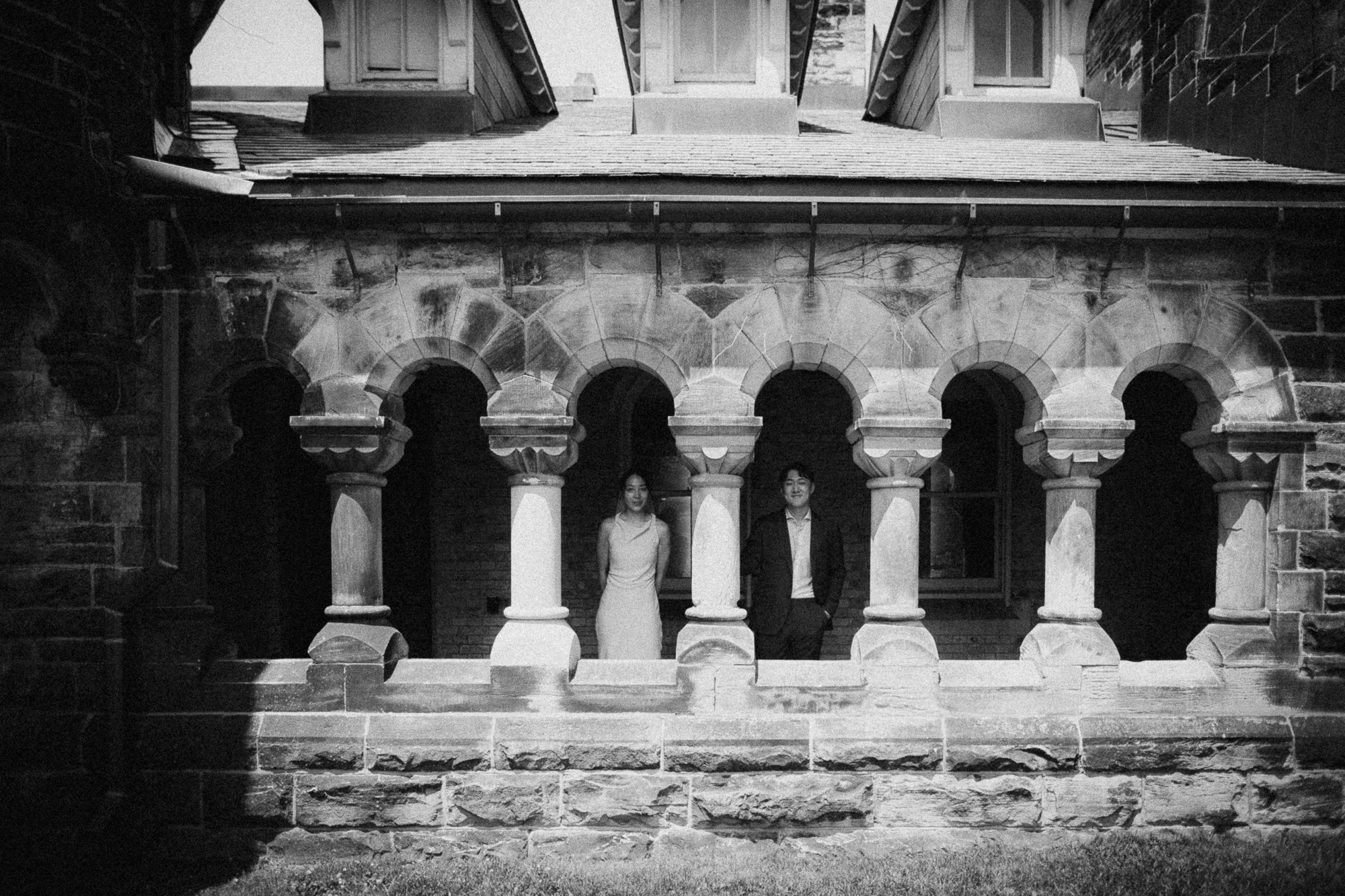 - Hart House – Hart House offers versatility with its stone exterior, elegant interiors, and nearby Soldiers’ Tower. The tower’s archway is a favorite for framing romantic portraits. For a playful vibe, capture moments on the grassy quad where students often relax.