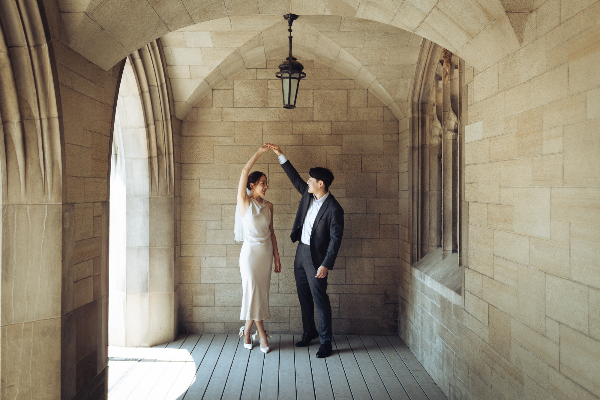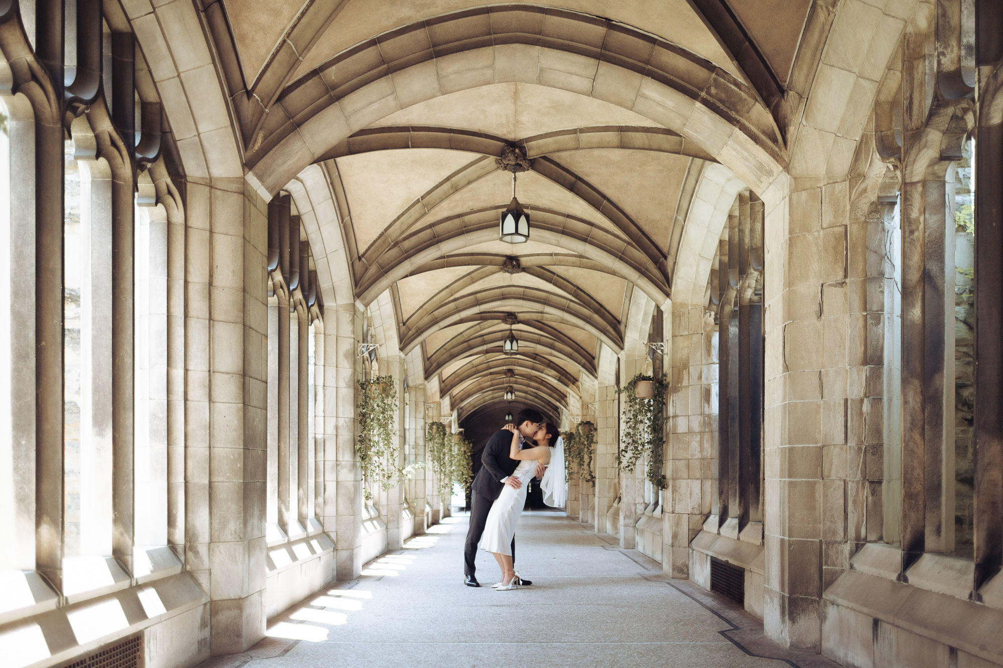 - Knox College Courtyard – This hidden gem features a picturesque Gothic cloister with ivy-covered walls. The courtyard’s intimate setting is ideal for candid, close-up shots of the couple stealing a kiss or sharing a laugh.